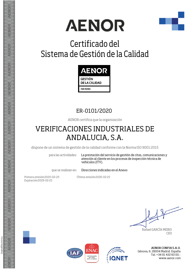 Prueba de que la calidad es uno de nuestros pilares fundamentales, es el hecho de que todas nuestras estaciones ITV y laboratorios cuentan con Acreditaciones ENAC (www.enac.es).